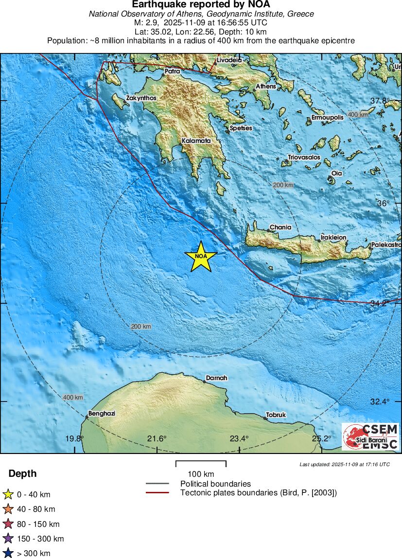 | 2.9 | 10.2 | 6004 | 09:56 | Link | Minor Earthquake- CENTRAL MEDITERRANEAN SEA - Today |