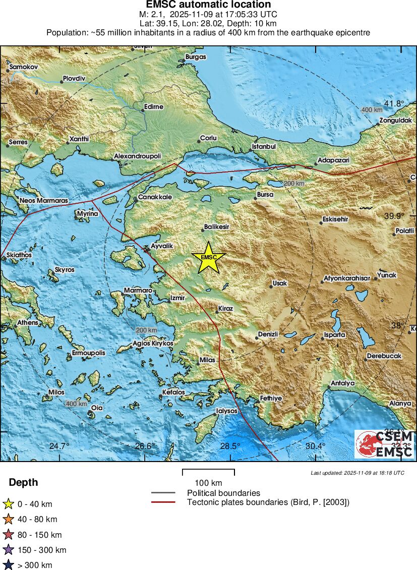 | 1.3 | 9.6 | 5939 | 09:51 | Link | Minor Earthquake- WESTERN TURKEY - Today |