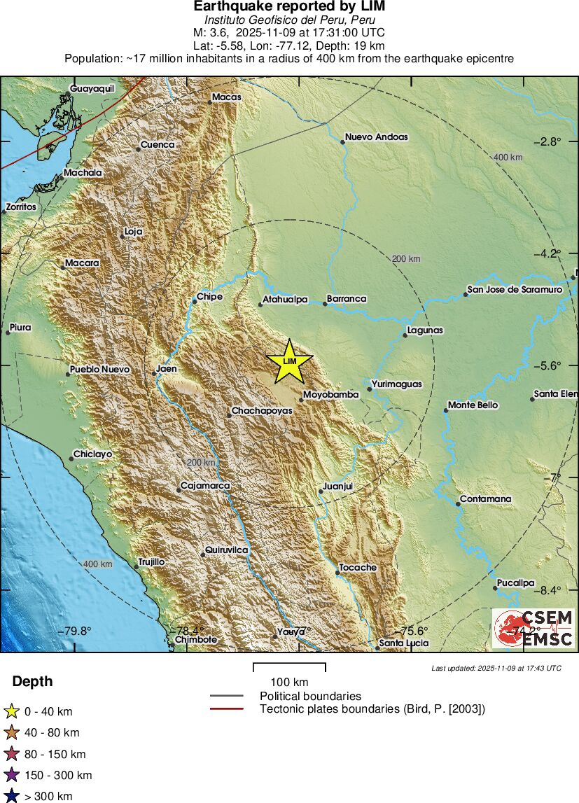 | 3.6 | 19 | 3806 | 10:31 | Link | Minor Earthquake- NORTHERN PERU - Today |