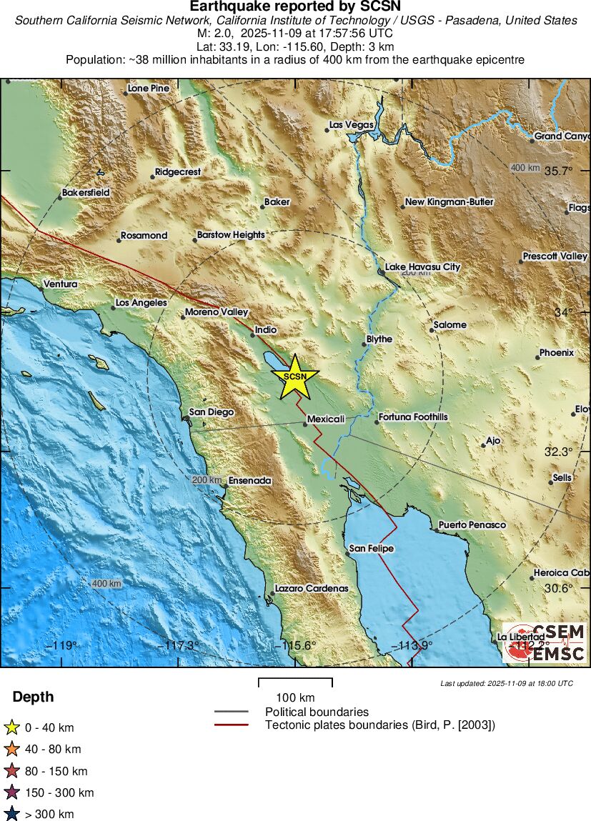 | 2 | 3.2 | 999 | 10:57 | Link | Minor Earthquake- SOUTHERN CALIFORNIA - Today |