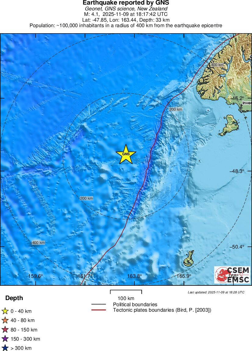 | 4.1 | 33 | 8489 | 11:17 | Link | Light Earthquake- OFF W. COAST OF S. ISLAND, N.Z. - Today |